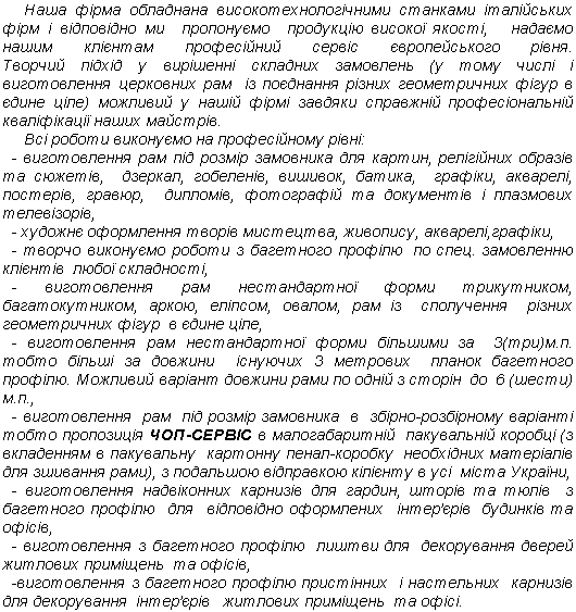 (послуга ЧОП-СЕРВІС), а також художніх творів в усі міста України